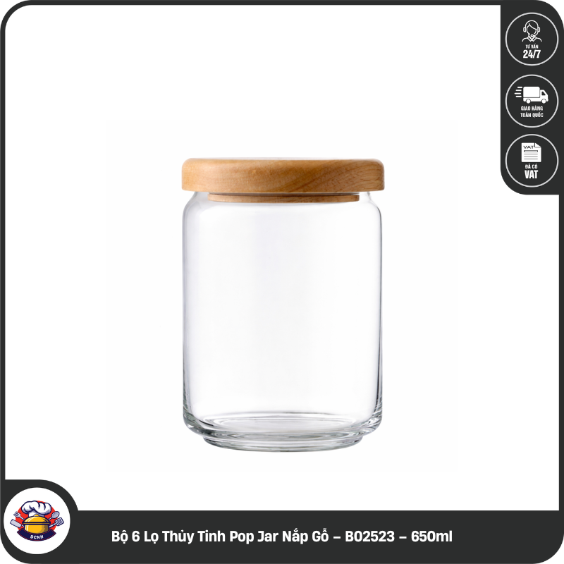 🌟 Bộ 6 Lọ Thủy Tinh Pop Jar Nắp Gỗ – Mã B02523 (650ml)