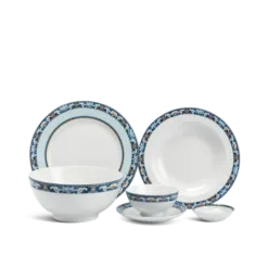 Nằm trong bộ sưu tập Jasmine, Bộ Bát Đĩa Minh Long Phước Lộc Thọ được trang trí bằng họa tiết Tam Đa: Ông Phúc, Ông Lộc, Ông Thọ – những biểu tượng quen thuộc cho những mong ước về sự may mắn, tài lộc dồi dào và sức khỏe trường thọ. Họa tiết này được thể hiện khéo léo trên nền men sứ trắng ngà sang trọng, tạo nên một tổng thể hài hòa, mang đến không khí cát tường và phú quý cho không gian ẩm thực.
