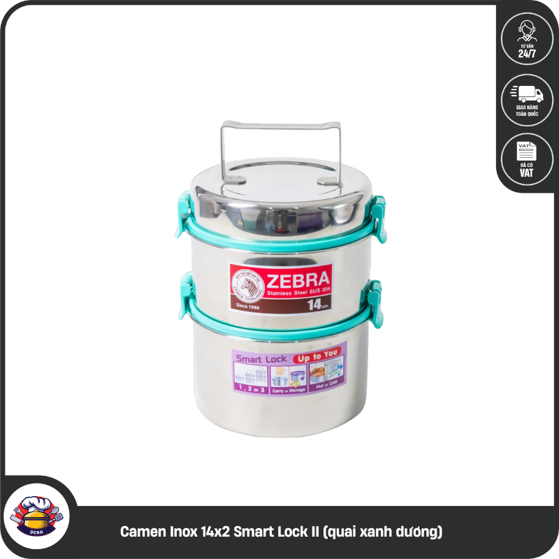 Trong phân khúc Camen cao cấp, dòng Smart Lock II của Zebra (Thái Lan) luôn đứng đầu về sự tin cậy và thiết kế thông minh. Với điểm nhấn quai xách màu xanh dương (xanh ngọc) thanh lịch kết hợp cùng chất liệu inox 304 siêu bền, sản phẩm không chỉ là dụng cụ lưu trữ thực phẩm mà còn thể hiện đẳng cấp chuyên nghiệp tại các dụng cụ nhà hàng khách sạn và văn phòng hiện đại.