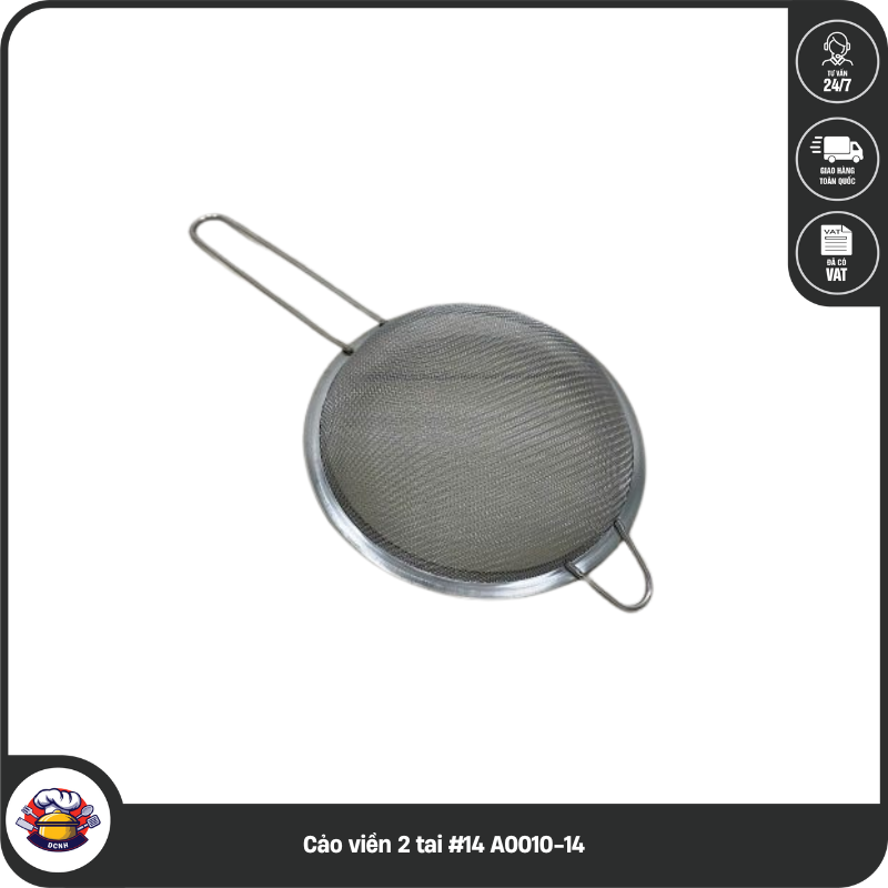 Cảo viền 2 tai mã A0010-14 với đường kính 14cm là dụng cụ lý tưởng để xử lý các loại thực phẩm nhỏ hoặc dùng trong các loại nồi quánh, nồi trụng mini. Thiết kế 2 tai móc giúp sản phẩm có thể đặt vững chãi trên thành nồi, hỗ trợ đầu bếp rảnh tay trong quá trình chờ thực phẩm ráo nước hoặc dầu.