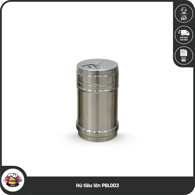 Nâng cấp bộ dụng cụ bàn ăn của bạn với sự bền bỉ và chuyên nghiệp của Hũ tiêu Inox lớn PBL003.