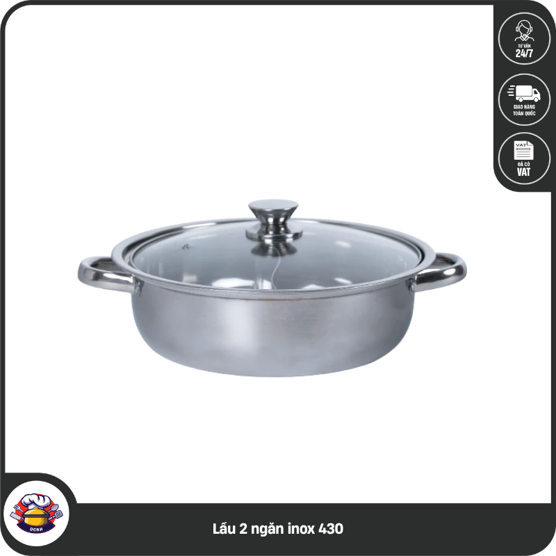 🥘 Nồi Lẩu 2 Ngăn (Inox 430) – Nắp Kiếng