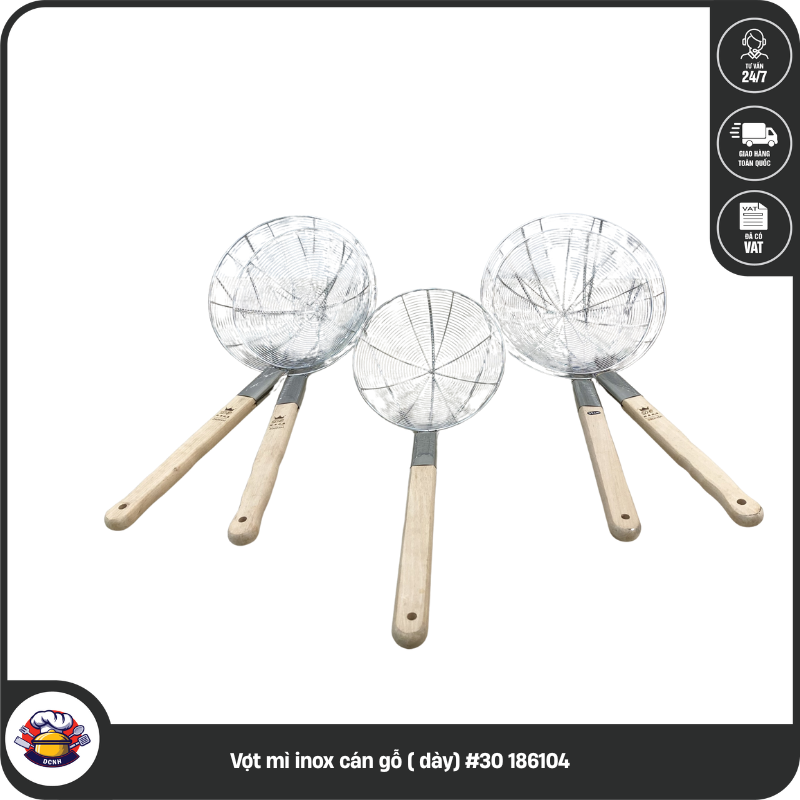 Nâng cao hiệu suất gian bếp với mẫu Vợt mì inox cán gỗ dày #30 chất lượng cao.